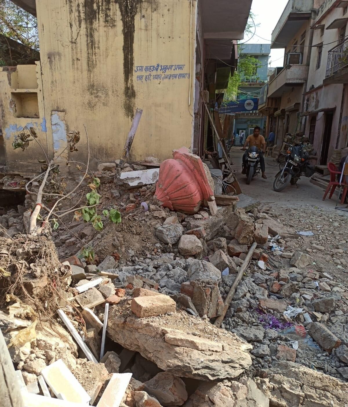 अलवर। प्रशासन ने मास्टर प्लान के नाम पर अलवर के राजगढ़ में करीब 300 साल पुराने तीन मंदिरों को बुलडोजर चलाकर गिरा दिया है। कार्रवाई से गुस्साए लोगों ने इसके विरोध में नगर पालिका के ईओ, एसडीएम और राजगढ़ विधायक के खिलाफ थाने में मुकदमा दर्ज करवाने के लिए तहरीर दी है, लेकिन अभी तक कोई एफआईआर दर्ज नहीं की गई है। अतिक्रमण के नाम पर मंदिरों को गिराए जाने के बाद सियासत भी गर्मा गई है। भारतीय जनता पार्टी गहलोत सरकार पर हमलावर हो गई है, वहीं प्रदेश कांग्रेस इसके लिए स्थानीय नगर पालिका के भाजपा बोर्ड को जिम्मेदार ठहरा रही है।