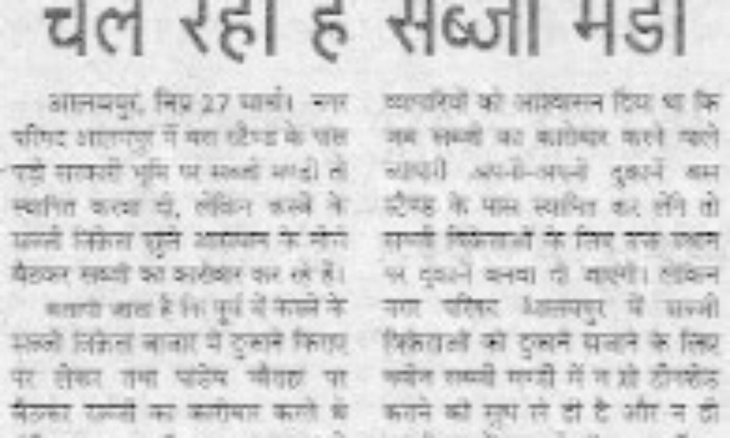 आलमपुर में सब्जी का व्यापार करने वालों की इस समस्या को लेकर स्वदेश संवाददाता ने गत 27 मार्च के अंक में 'खुले आसमान के नीचे चल रही है सब्जी मण्डी' नामक शीर्षक से खबर प्रकाशित की तो नगर परिषद प्रशासन कुंभकर्णी नींद से जाग गया। बताया जाता है कि बस स्टैण्ड के समीप पड़ी जिस शासकीय भूमि पर सब्जी विक्रेता सब्जी का कारोबार करते हैं, उस भूमि पर नगर परिषद द्वारा टीनशेड का निर्माण कार्य प्रारंभ करा दिया गया है। सब्जी मण्डी में टीनसेड लग जाने के पश्चात सब्जी विक्रेताओं को धूप व बारिश से होने वाली परेशानी से निजात मिलेगी।
