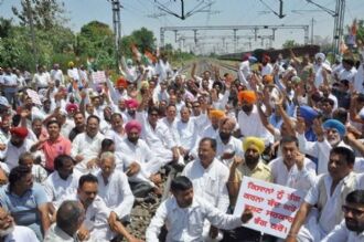 पंजाब में कांग्रेस का रेल रोको आंदोलन