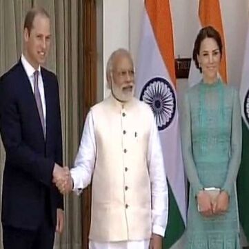नई दिल्ली। प्रधानमंत्री नरेंद्र मोदी ने भारत दौरे पर आए ब्रिटिश शाही दंपति प्रिंस विलियम्स और उनकी पत्नी केट मिडिलटन से मुलाकात की। हैदराबाद हाउस में प्रिंस विलियम्स और उनकी पत्नी केट मिडिलटन ने प्रधानमंत्री मोदी के साथ दोपहर का भोजन किया।