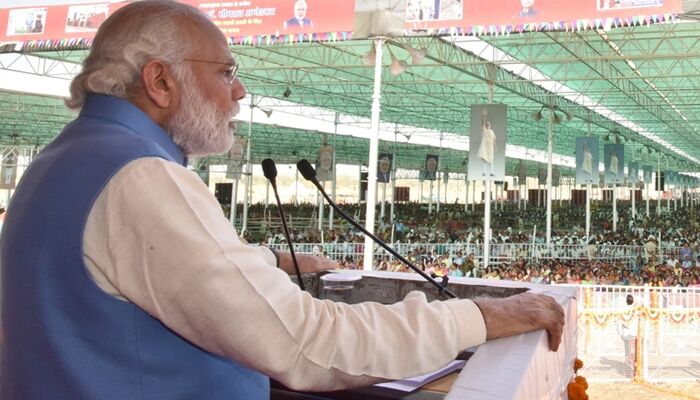 कांग्रेस पर प्रहार जारी रखते हुए उन्होंने कहा, ‘जो लोग वोट बैंक की राजनीति में लगे रहते हैं वे समाज को बांटने के अलावा और कुछ नहीं सोच पाते हैं। कुछ लोग पिछले 60 साल से अपने को गरीबों का मसीहा बताते आ रहे हैं। लेकिन इन 60 सालों में गरीबों के लिए काम करने का उनका लेखा जोखा स्तब्ध करने वाला है। वे सिर्फ दिन रात गरीबों की बात ही करते रहे, किया कुछ नहीं।’ गरीबों को रसोई गैस कनेक्शन देने और जन धन योजना का जिक्र करते हुए उन्होंने कहा कि दो साल के शासन में ही उनकी सरकार ने गरीबों के उत्थान के लिए कई बड़े कदम उठाए हैं।