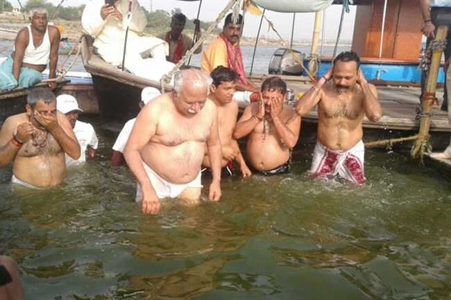गंगा में स्नान करने वाले नेताओं में पार्टी प्रवक्ता संवित पात्रा, हरियाणा के मुख्यमंत्री मनोहर लाल खट्टर, गुजरात के शिक्षा मंत्री नितिन पटेल, गोवा के मुख्य्मंत्री लक्ष्मीकांत परिरस्कर, रेलवे मंत्री सुरेश प्रभु और कानून मंत्री सदानंद गौड़ा शामिल थे।