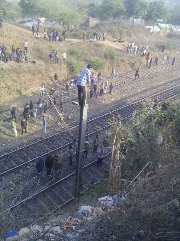 जिसके बाद जब पुलिस ने युवक से पूछताछ की तो उसने अपना नाम धर्मेन्द्र धाकड़ पुत्र महाराज सिंह धाकड़ मुरैना का रहने वाला बताया , उसने बताया कि उसने बीसीए किया है व पुलिस भर्ती में उसका दो बार चयन भी हुआ लेकिन गोला फेंक के कारण उसका चयन नहीं हो सका। इसी बीच वह काम की तलाश में ग्वालियर आया जहां पर थाटीपुर स्थित चौहान प्याऊ पर फ्लैक्स की दुकान में नौकरी करनी शुरू कर दी। वहां पर कई लोग अनपढ़ थे जो कि धर्मेंद्र का पढ़े-लिखे होने का मजाक उड़ाते थे। यहां तक उसके साथ काम करने वाले कुछ दोस्तों ने उस पर चोरी का आरोप लगा दिया। जिससे वह काफी आहत हो बैठा। इसी बात को लेकर धर्मेन्द्र झांसी रोड थाने के पीछे सिंधिया नगर के समीप रेलवे ट्रेक की ओएचई लाइन पर चढ़कर हंगामा करने लगा। धर्मेंद्र चिल्ला-चिल्लाकर कलेक्टर और एस.पी को बुलाने की मांग करने लगा। धर्मेन्द्र जिस लाइन पर चढ़ा था वहां से रेल ग्वालियर से भोपाल की तरफ रवाना होती है। धर्मेन्द्र के लाइन पर चढ़े होने की वजह से वहां से गुजरने वाली सभी ट्रेनों को अधिकारियों को बीच में ही रुकवाना पड़ा। आरपीएफ ने युवक को कड़ी मशक्कत के बाद खम्बे से नीचे उतारा।