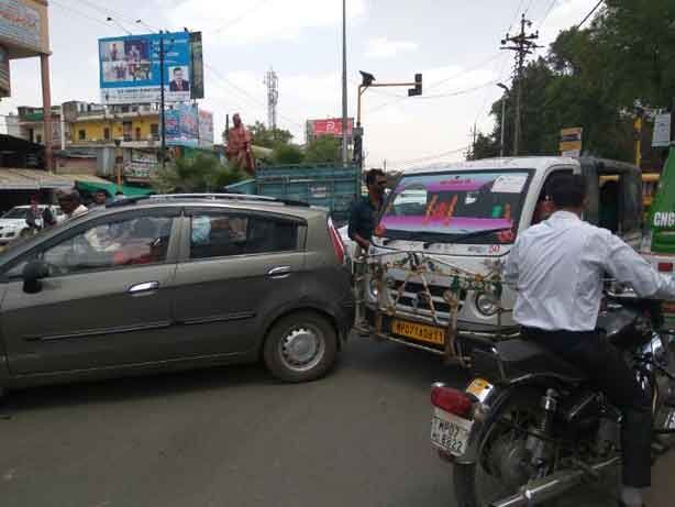 डीएएसएफआई के बैनर तले विगत दिनों से झलकारी बाई पार्क में भूख हड़ताल पर बैठे छात्रों के समर्थन में गुरुवार को लगभग आधा सैकड़ा छात्रों ने थाटीपुर चौराहे से पैदल झलकारी बाई पार्क तक रैली निकाली। इस दौरान सड़क पर पूरी तरह जाम लग गया। यहां तक कि उपद्रवी छात्रों ने कई टेम्मो चालकों के साथ अभद्र व्यवहार भी किया। छात्रों की रैली से रास्ते भर वाहनों का जाम लगा रहा। कई राहगीर गर्मी के बीच परेशान होते दिखे, तो कहीं लोगों की गाड़ियां जाम लग जाने के कारण आपस में टकरा गर्इं। रैली के दौरान पुलिस का एक वाहन उसी रोड से निकला। वाहन चालक ने सायरन भी बजाया, लेकिन छात्रों ने उसे भी नहीं निकलने दिया। स्थिति यह थी कि पूरे रास्ते छात्र देश विरोधी और आजादी के नारे लगाते हुए पार्क पहुंचे और आंदोलन कर रहे छात्रों को समर्थन दिया। छात्रों का कहना था कि जब तक जीवाजी विवि के दोनों प्राध्यापकों को गिरफ्तार नहीं किया जाएगा, तब तक वह पीछे नहीं हटेंगे। इस मामले में सबसे बड़ी बात तो यह है कि छात्र थाटीपुर चौराहे से झलकारी बाई पार्क तक लगभग एक घण्टे तक उपद्रव मचाते रहे, लेकिन पुलिस प्रशासन की ओर से एक भी जवान वहां नहीं पहुंचा। वहीं जब छात्र पार्क में पहुंचे तो पुलिस बल ने छात्रों को समझाने का प्रयास किया, लेकिन वे नहीं माने और पुलिस के सामने ही नारेबाजी करते रहे।