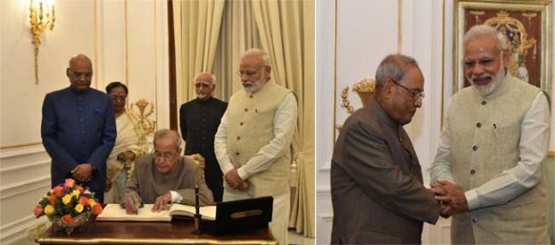 दूसरी तरफ पीएम मोदी ने आज शनिवार को प्रणब मुखर्जी के सम्मान में डिनर दिया। पीएम मोदी के भोज में बिहार मुख्यमंत्री नीतीश कुमार भी मौजूद रहें। बिहार में राष्ट्रीय जनता दल और जनता दल युनाइटेड की महागठबंधन की सरकार को लेकर चल रही खींचतान के बीच नीतीश की डिनर समारोह में मौजूदगी काफी आकर्षण का केंद्र रही। वहीं नीतीश नव निर्वाचित राष्ट्रपति रामनाथ कोविंद के शपथ समारोह में भी शिरकत करेंगे।