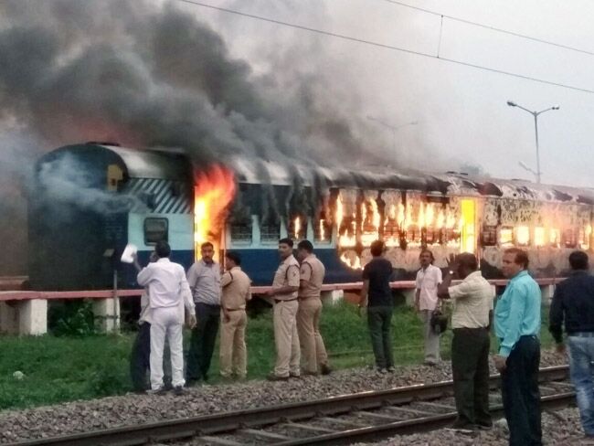 यार्ड में खड़ी सुशासन की सामान्य बोगी धू-धू कर जली