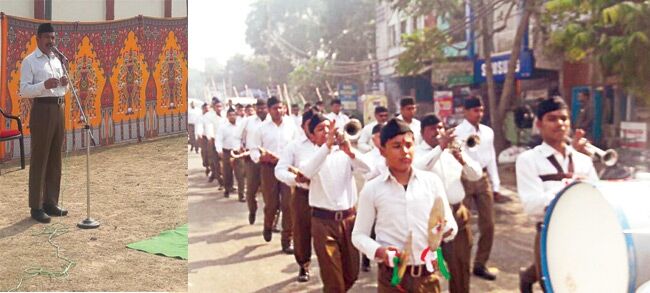 संचलन समाप्ति पर डॉ हरीश जी ने मार्गदर्शन दिया और कहा कि एक साथ कदम मिलाकर चलने से एक मन के व्यक्तियों का संगठन बनता है और आत्म विश्वास बढ़ता है व डर दूर हो जाता है। उन्होनें उदाहरण दिया कि 1998 में भारत में परमाणु विस्फोट किये जाने से पूर्व डॉ कलाम के नेतृत्व में वैज्ञानिकों की टीम रेगिस्तान के रेतली रेत पर कड़ी धूप में अभ्यास किया और सफलता पूर्वक परीक्षण को पूरा किया। यह डॉ. कलाम की टीम के एक साथ रहने व एक मत के कारण संभव हुआ। उन्होनें आगे कहा कि संघ अभी भारत में एक प्रतिशत के लगभग पंहुचा है जिस दिन 2 प्रतिशत या उससे अधिक स्वयंसेवक पंहुच गये पूरी दुनिया में खलबली मच जायेगी और भारत पुनरू विश्व गुरु के स्थान पर विराजमान हो जायेगा और कहा कि भारत में बारकृबार चुनाव न होकर एक साथ भारत वर्ष के चुनाव प्रक्रिया होने से भारत सरकार का 87 हजार करोड़ लगभग बचेगा तथा अन्य घटनाऐं नहीं घटेगी और समय की बचत होगी।इस मौके पर ब्रंज प्रान्त प्रचार प्रमुख केशव जी,सुभाष बोहरा, प्रान्त शारीरिक प्रमुख प्रदीप जी, सह शारीरिक प्रमुख महावीर जी, महानगर प्रचारक गोविन्द जी, महानगर कार्यवाह अरविन्द जी सहकार्यवाह खगेश जी, छावनी विधायक जी.एस.धर्मेश, बेबीरानी मौर्य व संघ अन्य कार्यकर्ता उपस्थित रहे।
