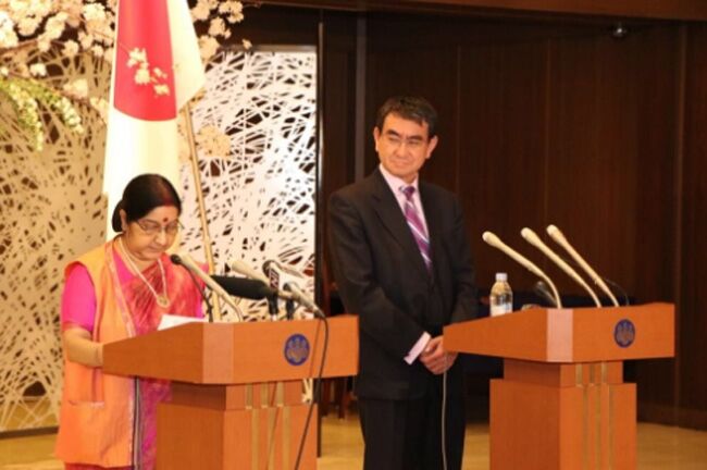 जापान के विदेश मंत्री तारो कोनो से हुई अपनी बातचीत के बारे में बताते हुए सुषमा स्वराज ने कहा कि विदेश मंत्री कोनो के साथ मेरी चर्चा में, मैंने जोर दिया कि भारत की परिवर्तनकारी यात्रा में, हम जापान को प्राकृतिक साथी के रूप में देखते हैं। हमारा मानना है कि पूंजी, प्रौद्योगिकी या मानव संसाधनों के चाहे हमारे रिश्तेदार फायदे को गठबंधन करने के लिए और पारस्परिक लाभ के लिए काम करने के लिए व्यापक अवसर हैं।