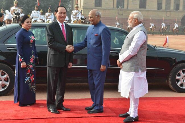 नई दिल्ली। भारत और वियतनाम के बीच 2000 सालों से पुराने सभ्यातागत संबंध हैं। बौद्ध धर्म, हिन्दू चम्पा सभ्यता और हमारे साझा दर्शन ने हमारे समान रिश्तों को सुदृढ़ बनाया है। हमारे आर्थिक संबंधों में उल्लेखनीय वृद्धि हुई है। हमारे नेताओं ने 2020 तक 15 बिलियन डॉलर का व्यापार लक्ष्य निर्धारित किया है। हमें इस लक्ष्य तक पहुंचने के लिए अपने प्रयासों में दोगुनी तेजी लानी होगी। वियतनाम के राष्ट्रपति का भारत में स्वागत करते हुए राष्ट्रपति रामनाथ कोविंद ने वियतनाम को जनवरी 2018 में नई दिल्ली में आयोजित आसियान भारत स्मारक शिखर सम्मेलन में ठोस परिणाम सुनिश्चित करने में एक समन्वयक देश की भूमिका निभाने के लिए धन्यवाद दिया।