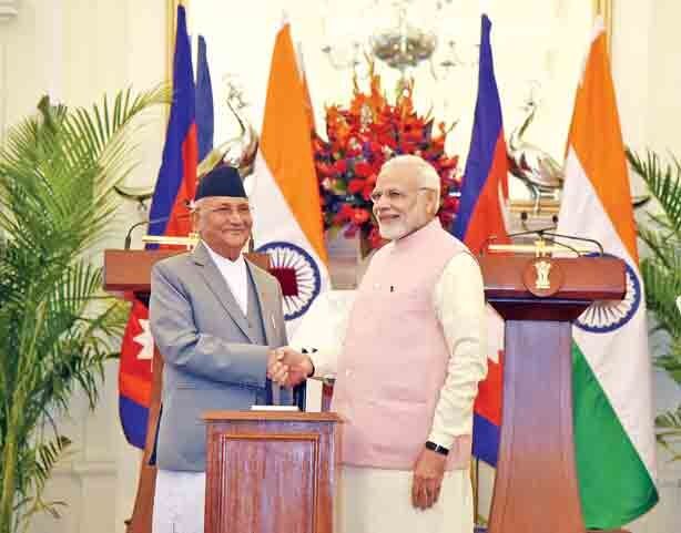 नई दिल्ली। तीन दिवसीय भारत दौरे पर पाए नेपाल के प्रधानमंत्री के.पी ओली ने शनिवार को प्रधानमंत्री मोदी से मुलाकात की। दोनों देशों के शीर्ष नेताओं की बीच हुई इस मुलाकात के दौरान कई समझौतों पर हस्ताक्षर हुए।