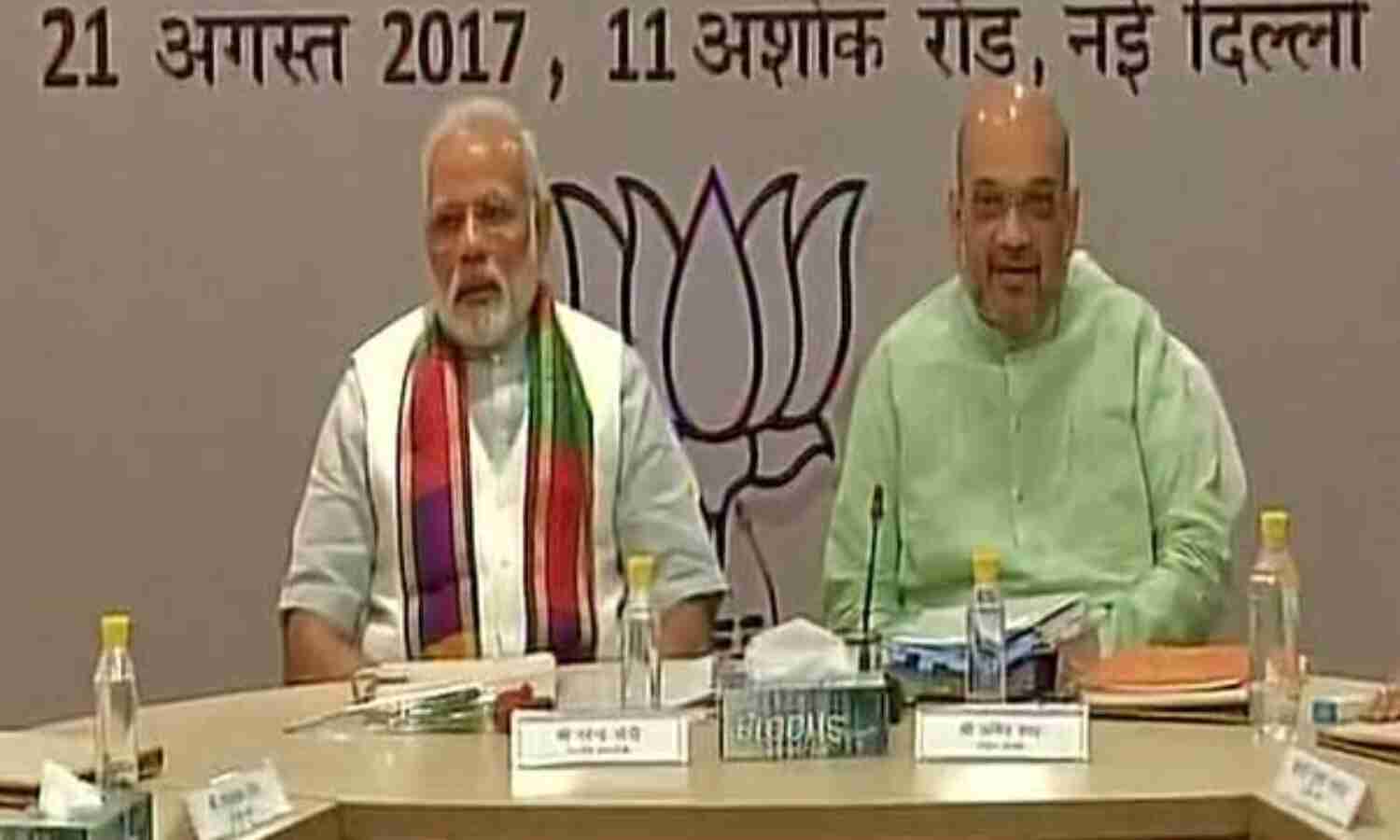हम आपको बता दें कि साल 2019 तक कनार्टक, हिमाचल प्रदेश, गुजरात, मध्यप्रदेश, छत्तीसगढ़, ओडिशा, पूर्वोत्तर के कई राज्यों में विधानसभा चुनाव होने हैं। पार्टी सूत्रों ने बताया कि बैठक में प्रधानमंत्री ने विकास, सुशासन और गरीब कल्याण के मंत्र को साकार करने में राज्यों की भूमिका की समीक्षा की। नरेंद्र मोदी और अमित शाह के साथ अहम बैठक में शामिल होने के लिए यूपी के मुख्यमंत्री योगी आदित्यनाथ, मध्य प्रदेश के मुख्यमंत्री शिवराज सिंह चौहान, राजस्थान की मुख्यमंत्री वसुंधरा राजे सिंधिया, महाराष्ट्र के मुख्यमंत्री देवेंद्र फड़णवीस, उत्तराखंड के मुख्यमंत्री त्रिवेंद्र सिंह रावत, गुजरात के मुख्यमंत्री विजय रपाणी, असम के मुख्यमंत्री सवार्नंद सोनोवाल, हरियाणा के मुख्यमंत्री मनोहर लाल खटटर, मणिपुर के मुख्यमंत्री विरेंद्र सिंह, अरणाचल प्रदेश के मुख्यमंत्री पेमा खांडू, छत्तीसगढ़ के मुख्यमंत्री रमन सिंह शामिल हुए।