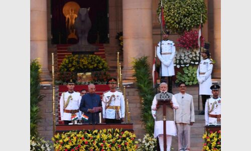 राष्ट्रपति भवन (नई दिल्ली)। शपथ लेना तो सरल है पर निभाना कठिन है। यह एक गीतकार की सुंदर पंक्तियां हैं पर आज जब देश के प्रधानमंत्री के रूप में नरेंद्र दामोदर दास मोदी शपथ ले रहे थे तो सारा देश देख रहा था कि आज की शपथ वाकई असाधारण है, अद्भुत है और प्रामाणिक है। कारण देश ने देखा है, अनुभव किया है कि बीते पांच वर्षों में मोदी और उनकी टीम ने अपना सम्पूर्ण देने का प्रयास किया है और आज इसीलिए न केवल राष्ट्रपति भवन के भव्य एवं दिव्य समारोह स्थल पर देश का सांकेतिक स्वरूप अपितु सम्पूर्ण देश ने आज इस शपथ समारोह को एक सुखद आश्वस्ति के रूप में अनुभव किया।
