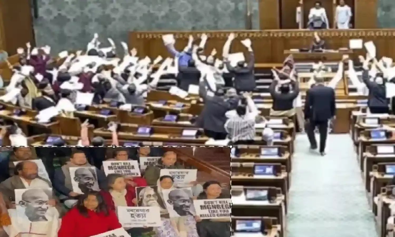 बिल के पास होते ही TMC सांसद संसद परिसर में धरने पर बैठ गए। उनका कहना था कि यह कानून महात्मा गांधी के नाम से जुड़ी रोजगार गारंटी की आत्मा पर हमला है।TMC नेताओं ने इसे किसानों और ग्रामीण गरीबों के खिलाफ बताया। शुक्रवार सुबह तक विरोध जारी रहा, जिसकी तस्वीरें सोशल मीडिया पर वायरल होती रहीं।