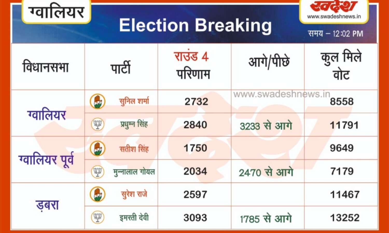 ग्वालियर : चौथे चरण की मतगणना पूरी, भाजपा आगे