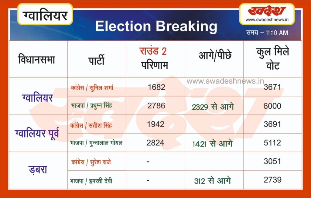 ग्वालियर : दूसरे चरण की मतगणना पूरी, भाजपा आगे