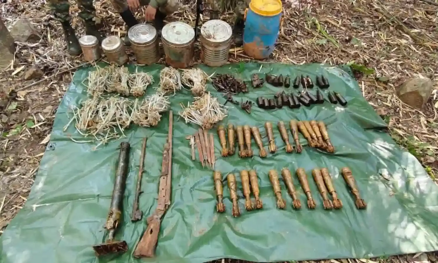 सुरक्षा मानकों का पालन करते हुए पहाड़ी क्षेत्र की तलहटी में सर्च ऑपरेशन चलाया गया, जहां चट्टानों के भीतर प्लास्टिक ड्रम और स्टील के डिब्बों में छिपाकर रखी गई यह सामग्री बरामद की गई है। जिसमें, जवानों ने मौके से 1 नग कंपनी निर्मित मोर्टार, 22 नग मोर्टार सेल, 1 नग भरमार बंदूक, 150 नग डेटोनेटर, 18 नग तीर बम, आईईडी निर्माण से जुड़ी अन्य सामग्री बरामद की है।