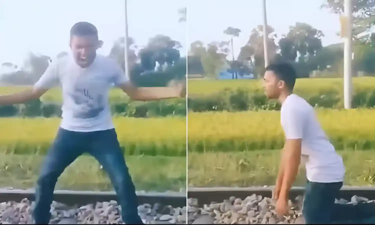 हैदराबाद। सोशल मीडिया पर वायरल हो रहा है जिसमें एक खतरनाक वीडियो जिसमें एक व्यक्ति रेलवे ट्रैक के बीच लेटा है और तेज़ रफ्तार ट्रेन उसके ऊपर से गुजरती है, वीडियो सांमने आने के बाद लोग कड़ी कार्रवाई की मांग कर रहे हैं।। हैदराबाद पुलिस कमिश्नर वीसी सज्जनार ने इस खतरनाक स्टंट को मूर्खता के सिवा कुछ नहीं बताया और चेतावनी दी है कि एक भी पल की लापरवाही जानलेवा साबित हो सकती है।