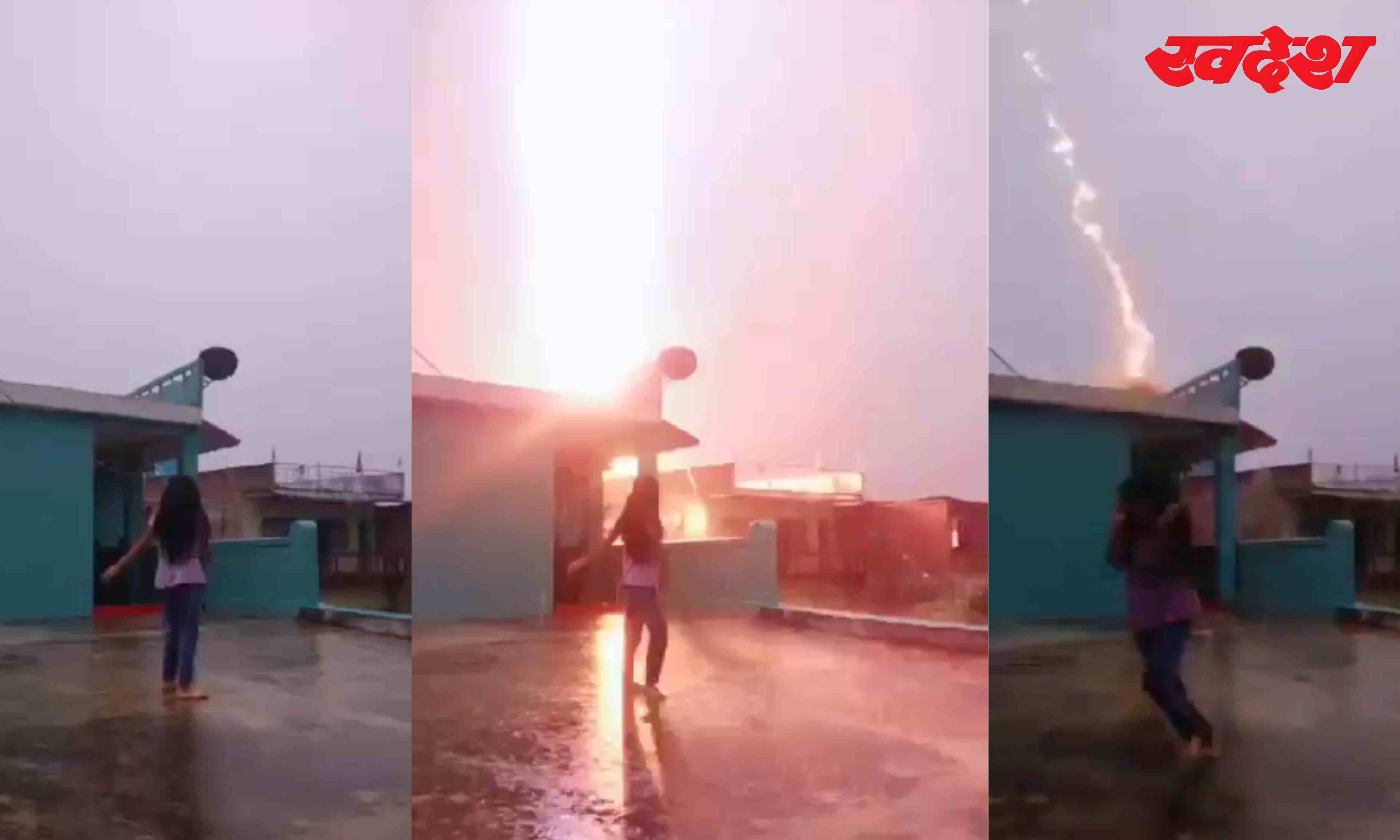 एक लड़की बारिश के मौसम में झूम - झूम कर बारिश का आनंद ले रही थी उसी दौरान अचानक बिजली आ कर गिर गई वो तो गनीमत रही की लड़की बाल- बाल बच गई इस घटना का वीडियो सोशल मीडिया पर वायरल हो रहा है।