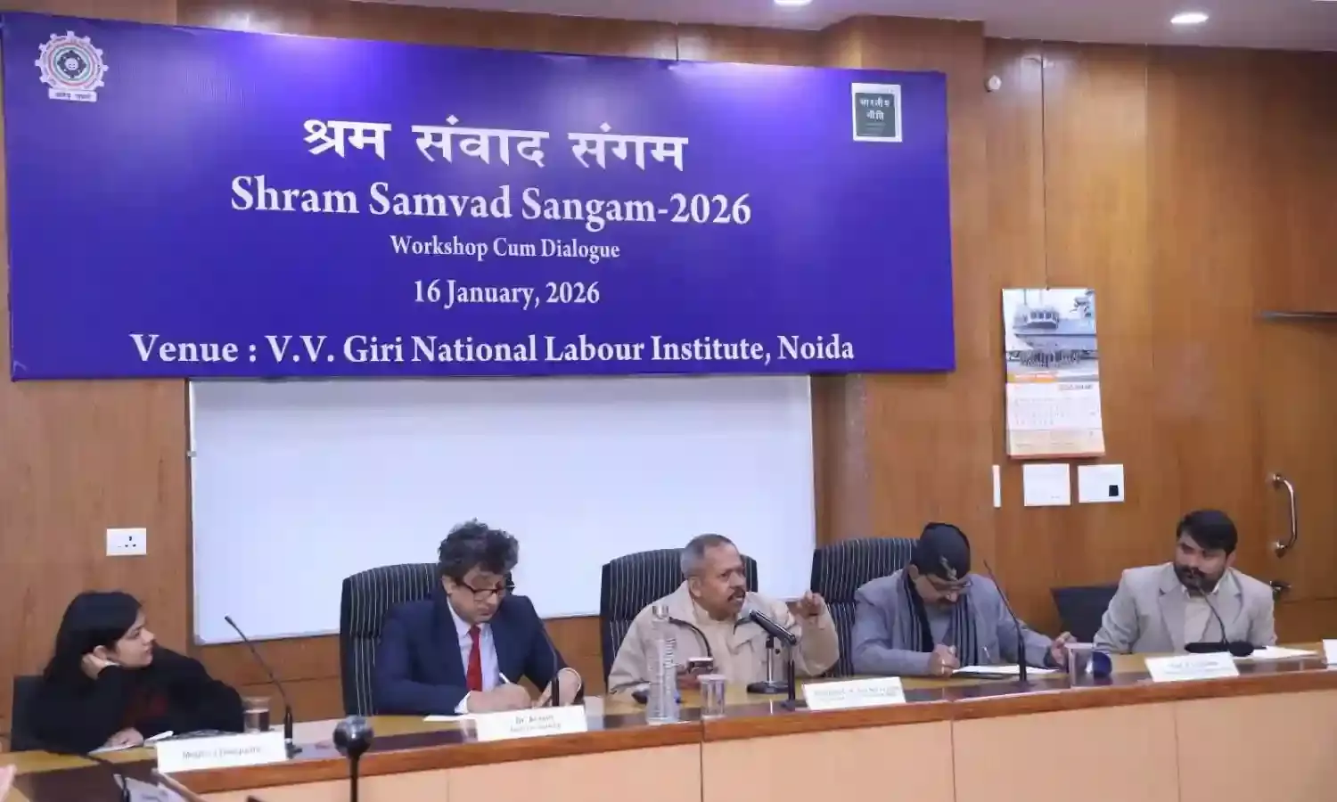 भारतीय ज्ञान परंपरा में ‘श्रम’ शारीरिक परिश्रम की सीमा को लांघते हुए मानवीय गरिमा, आत्मसम्मान और सामाजिक समन्वय की प्रतिष्ठा स्थापित करने वाला शब्द है। भारतीय सभ्यतागत चेतना में श्रम को आर्थिक क्रिया मात्र से परे जाकर यज्ञ के रूप में स्वीकार किया गया है । श्रम यज्ञ में रत मनुष्य अपने सचेत कर्म करते हुए स्वयं को पोषित करता है। ऋग्वेद में मानव श्रम को सृष्टि को एक सुव्यवस्थित ढाँचे में संयोजित- संवर्धित करने वाली शक्ति के रूप में प्रतिष्ठित किया गया है, दूसरी ओर भगवद्गीता में कर्म श्रम को मानवीय उद्देश्य एवं कर्तव्य-बोध के रूप में जीवन के केंद्र में स्थापित करती है। श्रम से जुड़े विविध कौशल, शिल्प और सृजन को भारतीय शास्त्रीय और लोकमानस में विश्वकर्मा के रुप में देवता का दर्जा प्राप्त है। स्पष्ट है कि भारतीय चिंतन पंरपरा और दृष्टिकोण में श्रम को नैतिकता, समुदाय और सामाजिक समरसता से पृथक नहीं किया जा सकता। किन्तु आधुनिक काल में नीति-भाषा ने इस सभ्यतागत विरासत से धीरे-धीरे दूरी बना ली है। आज श्रम पर विमर्श प्रायः अनुपालन, पंजीकरण, आँकड़ा-पटल और सांख्यिकीय सूचकों तक सीमित हो गया है। श्रमिक, अपने अनुभव और सामाजिक अस्तित्व सहित मानव न रहकर, आँकड़ों की एक सूचनागत इकाई बनता जा रहा है। सभ्यता और प्रशासन के मध्य बढ़ती इसी खाई की गहराई कम करने में श्रम संवाद संगम–2026 की सार्थकता निहित है। वी. वी. गिरि राष्ट्रीय श्रम संस्थान, नोएडा में भारतीय नीति संवाद केंद्र के सहयोग से आयोजित यह संगम केवल श्रम संहिताओं पर केंद्रित एक तकनीकी चर्चा मात्र नहीं था। यह शासन प्रशासन को "श्रम" को उसके भारतीय जड़ों से पुनः जोड़ने का प्रयास के साथ ही एक डिजिटल और आकांक्षी भारत की यथार्थ आवश्यकताओं से ईमानदार संवाद के रूप में भी देखें जाने का प्रस्ताव स्वीकार किया जा सकता है। भारतीय मजदूर संघ के पूर्व राष्ट्रीय अध्यक्ष, सी. के. साजी नारायणन; डॉ. अरविंद, महानिदेशक, वी. वी. गिरी राष्ट्रीय श्रम संस्थान; प्रो. के. जी. सुरेश, निदेशक, इंडिया हैबिटैट सेंटर, नई दिल्ली के मार्गदर्शन में यह संवाद भारत के सबसे व्यापक श्रमिक आंदोलन की नैतिक परंपरा से अनुप्राणित रहा ।इस आयोजन में संघर्ष और टकराव की औद्योगिक संस्कृति के स्थान पर गरिमा, संवाद और राष्ट्रीय उत्तरदायित्व की परंपरा को प्राथमिकता दिया है। संगम में उपस्थित प्रो. संजीव कुमार, देबाशीष सत्पथी, प्रो. मोनिका सूरी, डॉ. बी. भावना राव, अरुण चौहान तथा डॉ. दीपेंदर चहर जैसे सार्वजनिक बुद्धिजीवियों की उपस्थिति ने इस साझा समझ को सुदृढ़ किया ।