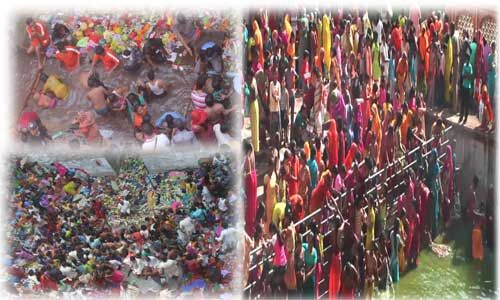 वाराणसी/स्वदेश वेब डेस्क। संतान (पुत्र) की चाह में लोलार्क छठ पर्व पर शनिवार को लाखों दम्पतियों ने एक साथ भदैनी स्थित संकरे लोलार्क कुण्ड में आस्था की डुबकी लगायी। कुंड में डुबकी लगाने के बाद श्रद्धालुओं ने अपने गीले वस्त्र और आभूषण कुंड में ही छोड़ दिया। नुकीली सुईयों से बिंधे हुए फल भगवान सूर्य को चढ़ा सन्तान प्राप्ति के लिए उनसे गुहार लगायी।