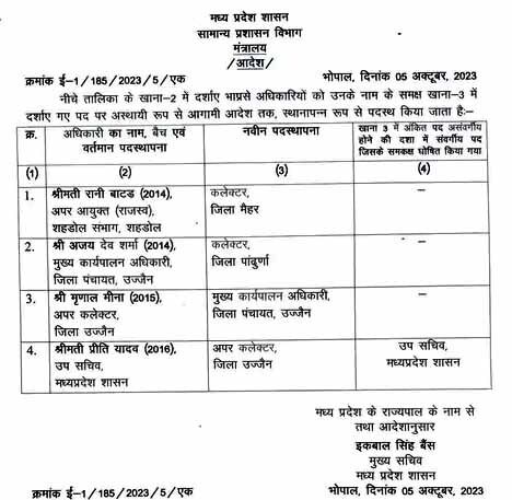 मुख्यमंत्री की इन घोषणाओंं के बीच देर रात मैहर में कलेक्टर की पदस्थापना कर दी गई है। 2014 बैच की आईएएस अधिकारी एवं अपर आयुक्त राजस्व शहडोल संभाग रानी बाटड़ को मैेहर जिले का पहला कलेक्टर बनने का सौभाग्य प्राप्त हुआ है। इस संबंध में देर रात आदेश भी जारी कर दिये गये हैं। आईएएस रानी बाटड फिलहाल शहडोल संभाग में अपर आयुक्त राजस्व के तौर पर अपनी सेवाएं दे रही हैं।