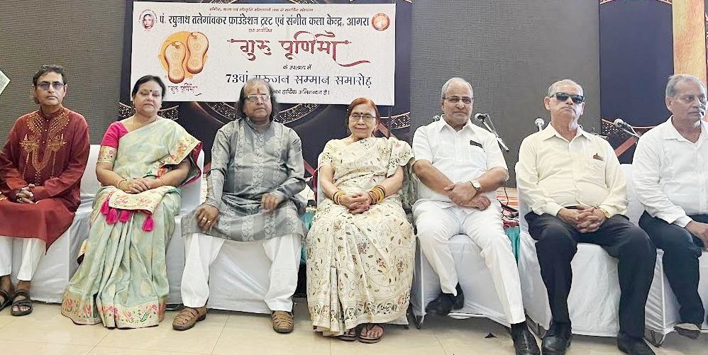 आगरा। पं. रघुनाथ तलेगांवकर फाउंडेशन ट्रस्ट एवं संगीत कला केन्द्र के संयुक्त तत्वावधान में रविवार को 73 वें गुरुजन सम्मान समारोह का आयोजन कैंट स्थित ग्रांड होटल में किया गया। जिसमें संगीत, साहित्य, शिक्षा, समाज, जनसंचार, नृत्य एवं आदर्श गुरु के क्षेत्र में विद्वत मनीषियों को सम्मानित किया गया।