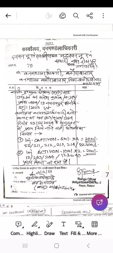 दस्तावेजों के अनुसार, कैपटीवान और एक्टिवोन दोनों दवाइयां दक्षिण अफ्रीका के वाइल्ड लाइफ फार्मास्युटिकल्स से मंगवाई गई थीं, जिनका उपयोग दिसंबर 2022 में किया गया था। इन दवाइयों का बैच नंबर 123040 था और इनके सीरियल नंबर 12/283, 284, 285, 286 थे।