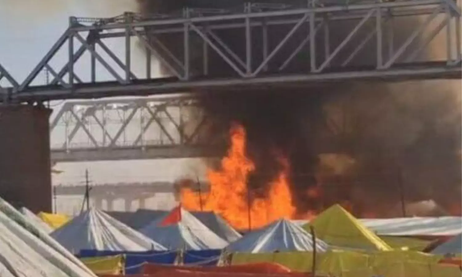 रेलवे ब्रिज के पास आग की लपटें