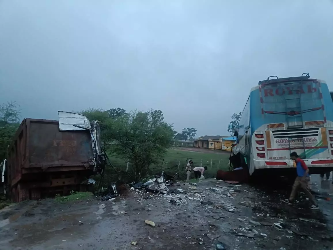 |Three Killed in Jagdalpur- Raipur Highway Accident : रायपुर। छत्तीसगढ़ की राजधानी रायपुर में एक भीषण सड़क हादसा हो गया है। इस हादसे में तीन लोगों की दर्दनाक मौत हो गई है, जबकि कई घायल हैं। यह हादसा मंगलवार सुबह जगदलपुर-रायपुर हाईवे पर हुआ है। जानकारी के मुताबिक, रॉयल बस की डंपर से भिड़ंत में मृतकों में दो पुरुष और एक महिला शामिल हैं, जबकि 6 अन्य गंभीर रूप से घायल लोगों को अस्पताल में भर्ती कराया गया है।