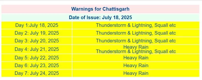 CG Weather Update: रायपुर सहित 15 जिलों में मूसलाधार बारिश, IMD ने जारी किया यलो अलर्ट