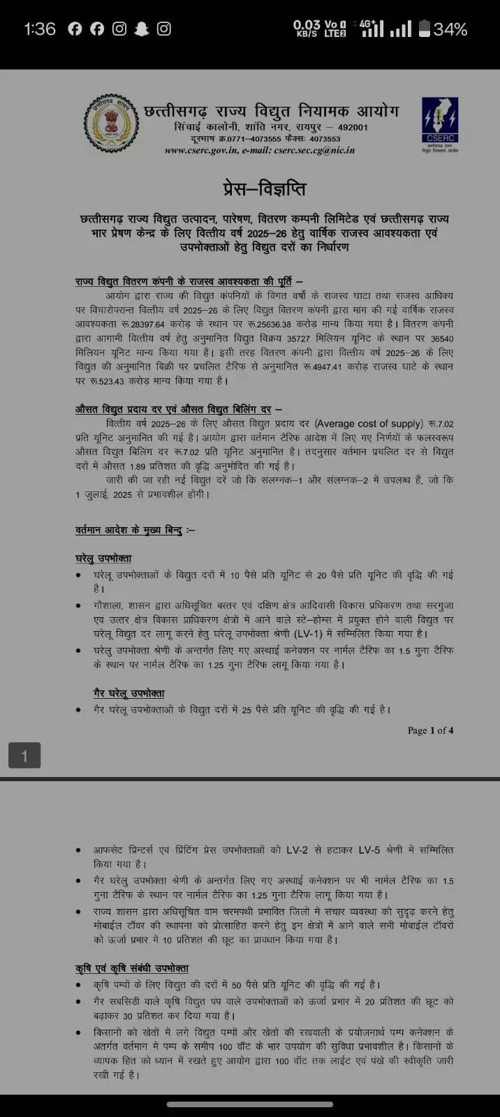 |Chhattisgarh Electricity Price Hike : रायपुर। छत्तीसगढ़ राज्य विद्युत नियामक आयोग (सीएसईआरसी) ने हाल ही में सभी श्रेणियों के उपभोक्ताओं के लिए बिजली दरों में औसतन 1.89 प्रतिशत की वृद्धि को मंजूरी दी है। यह नई दरें 1 जुलाई 2025 से लागू हो चुकी हैं। यह निर्णय राज्य के लगभग 60 लाख उपभोक्ताओं को प्रभावित करेगा, हालांकि कुछ श्रेणियों जैसे कृषि उपभोक्ताओं और ग्रामीण क्षेत्रों के अस्पतालों के लिए विशेष छूट और रियायतें बरकरार रखी गई हैं। इस लेख में हम नई बिजली दरों, छूट के प्रावधानों और इससे संबंधित सभी महत्वपूर्ण जानकारी को विस्तार से समझेंगे।