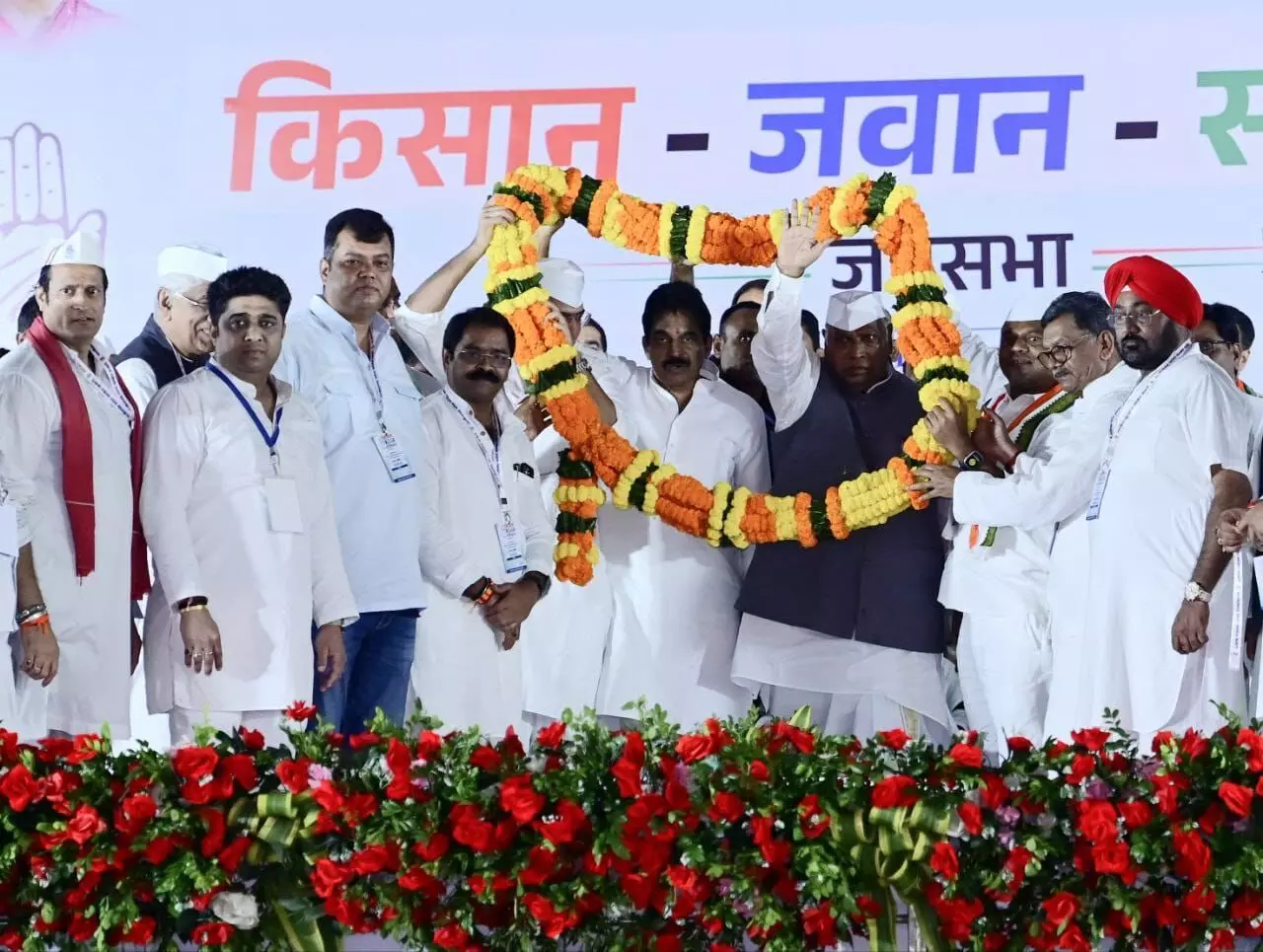 किसान जवान संविधान जनसभा: नायडू और नीतिश की टांगों पर चल रही केंद्र की मोदी सरकार - खड़गे
