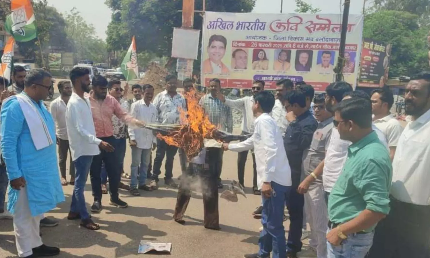 |Chhattisgarh Congress Burnt Effigies of ED and BJP : रायपुर। छत्तीसगढ़ में कांग्रेस ने एजेंसी ED के खिलाफ शनिवार को जमकर प्रदर्शन किया है। इस दौरान कोंग्रेस कार्यकर्ताओं ने सड़कों पर ED और बीजेपी का पुतला जलाया है। बलौदाबाजार में जिला कांग्रेस अध्यक्ष हितेंद्र ठाकुर के नेतृत्व में गार्डन चौक में कांग्रेसियों ने भाजपा व ईडी का पुतला दहन कर ईडी की कार्रवाई का विरोध किया।