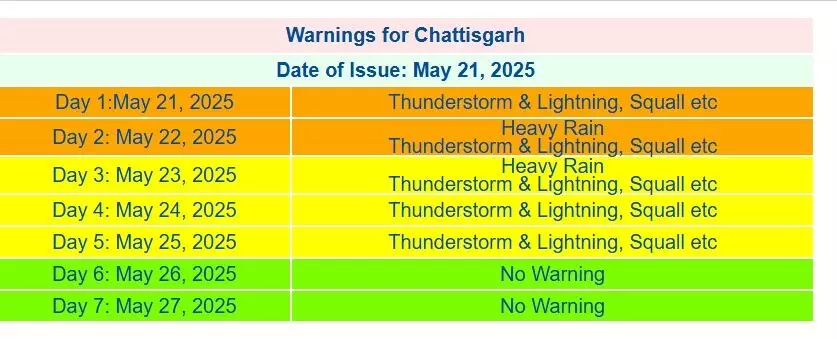 |Chhattisgarh Weather Today : रायपुर,स्वदेश। बंगाल की खाड़ी से इन दिनों प्रचुर मात्रा में नमी आा रही है। इसके चलते ही रायपुर सहित प्रदेश भर में तेज आंधी के साथ ही हल्की बारिश हो रही है। मौसम विज्ञानियों का कहना है कि गुरुवार व शुक्रवार को प्रदेश के विभिन्न क्षेत्रों में तेज आंधी के साथ बिजली गिरने व बारिश की संभावना है। एक दो स्थानों में भारी वर्षा हो सकती है। प्रदेश के सरगुजा संभाग और बस्तर संभाग के जिलों में कुछ स्थानों पर हल्की से मध्यम वर्षा और बिलासपुर, रायपुर व दुर्ग संभाग के जिलों में एक-दो स्थानों पर हल्की वर्षा होने की संभावना है।