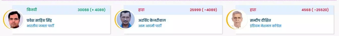 नई दिल्ली विधानसभा सीट चुनाव परिणाम :