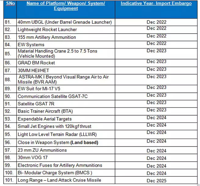 केंद्र सरकार ने 101 रक्षा उपकरणों के आयात पर बैन, देखें लिस्ट