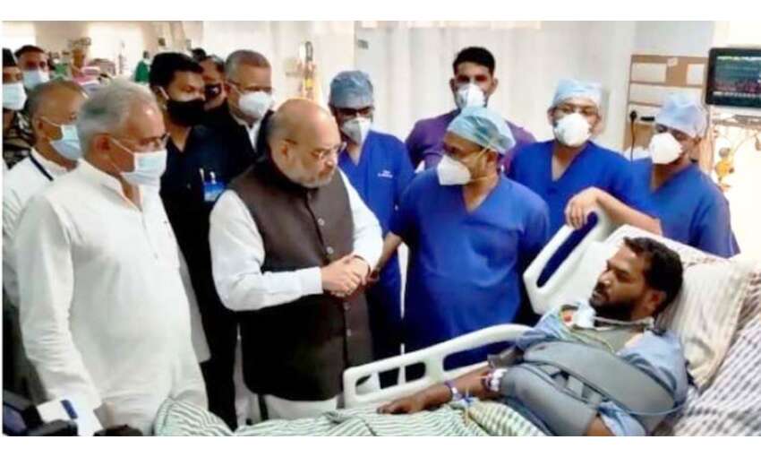 गृहमंत्री शाह और मुख्यमंत्री बघेल यहां उपचाररत जवानों से मिले और उनका हौसला बढ़ाते हुए शीघ्र स्वस्थ होने की कामना की। गृहमंत्री ने जवानों के स्वास्थ्य की स्थिति के बारे में अस्पताल प्रबंधन से चर्चा की और बेहतर इलाज सुनिश्चित करने के निर्देश दिए।