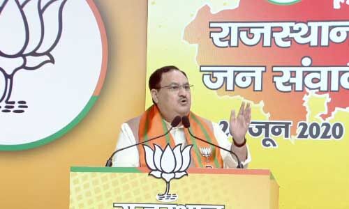 'राजस्थान जन संवाद' कार्यक्रम को संबोधित करते हुए नड्डा ने कांग्रेस पार्टी पर हमला बोला। उन्होंने कहा कि आज जब देश की सेना गलवान में डटी हुई है तो कांग्रेस के नेता ट्वीट करके फौज का मनोबल गिरा रहे हैं और अपनी बुद्धि का प्रदर्शन कर रहे हैं। क्या उन्हें अंतरराष्ट्रीय समझौतों की जानकारी नहीं है?