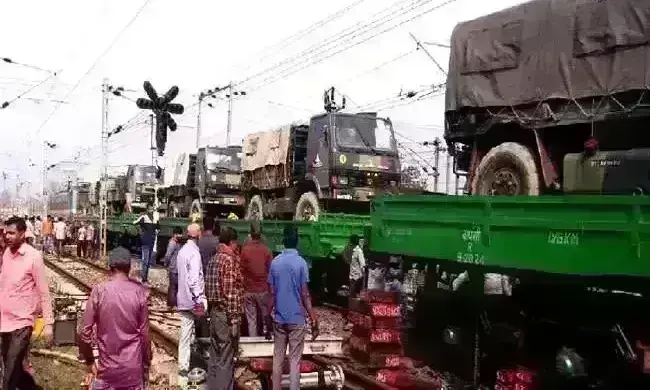 सेना का सामान ले जा रही मिलिट्री ट्रेन बेपटरी हुई, आर्मी ने कब्जे में लिया दुर्घटनास्थल