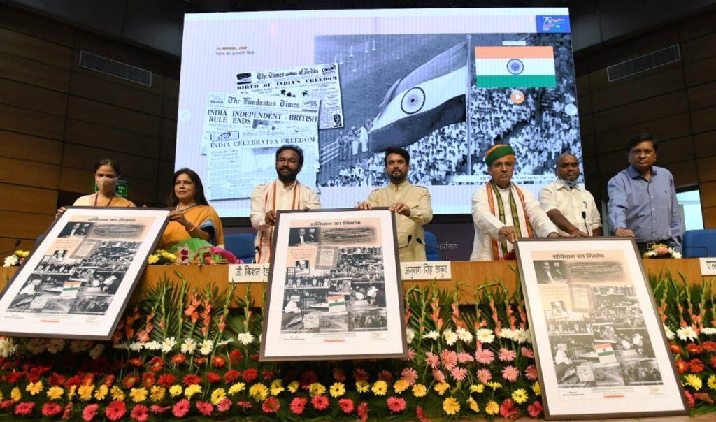 नईदिल्ली। केन्द्रीय मंत्री अनुराग ठाकुर और जी किशन रेड्डी ने शुक्रवार को संविधान के निर्माण पर आधारित ई चित्र प्रदर्शनी और देश भक्ति की भावना जागृत करने वाले फिल्मों के पोस्टर का कोलाज चित्रांजलि 75 जारी किया। चित्रांजलि के तहत देश के अलग अलग भाषाओं के 75 आईकॉनिक फिल्मों के पोस्टर का कोलाज तैयार किया गया है।