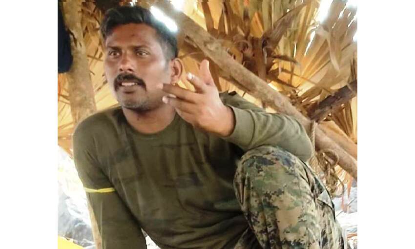 |रायपुर। छत्तीसगढ़ के बीजापुर जिले में 3 अप्रैल को हुई मुठभेड़ के बाद से एक जवान को नक्सलियों के कब्जे में बताया जा रहा है। जिसे वापिस लाने के लिए सुरक्षाबल द्वारा प्रयास किए जा रहे है। इसी बीच नक्सलियों ने अपहृत जवान की एक तस्वीर आज जारी की है। जिसमें राकेश्वर सिंह मन्हास पत्तियों से बनी एक झोपड़ी में बैठे हुए दिखाई दे रहे हैं।