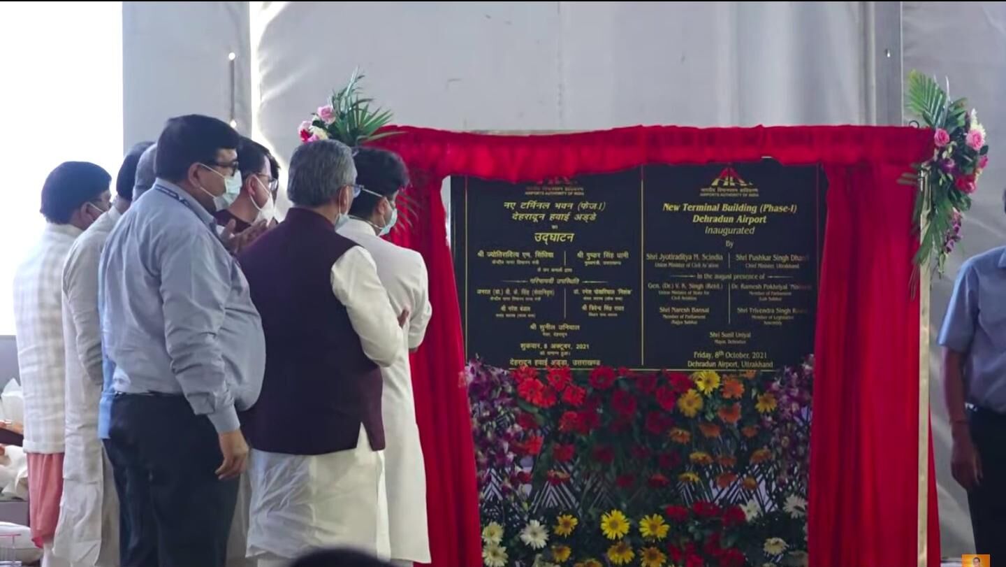 केन्द्रीय मंत्री ज्योतिरादित्य सिंधिया जौलीग्रांट एयरपोर्ट पर पहुंचे। उनके साथ मुख्यमंत्री पुष्कर सिंह धामी भी मौजूद रहे। यहां उन्होंने 353 करोड़ की लागत से तैयार नए टर्मिनल का निरीक्षण किया। इसके बाद वह लोकार्पण कार्यक्रम स्थल पर पहुंचे और नई हेली सेवाओं का उद्घाटन व टर्मिनल भवन का लोकार्पण किया।