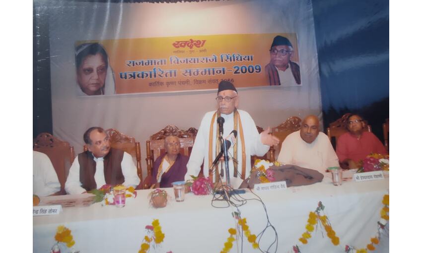 File Photo : राजमाता विजयाराजे सिंधिया राष्ट्रीय पत्रकारिता सम्मान वर्ष 2009 में स्वदेश द्वारा श्री मा.गो. वैद्य जी को सम्मानित किया गया था।