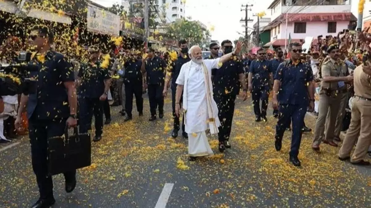 |नई दिल्ली / वेब डेस्क। केरल के कोच्चि में रोड शो के दौरान लोग जब प्रधानमंत्री नरेंद्र मोदी का स्वागत कर रहे थे। उसी समय पीएम कार से उतरकर भीड़ के बीच पैदल चलने लगे। तभी अचानक कोई वस्तु उनकी ओर आई। जिसे एसपीजी कमांडो ने पीएम की ओर आने से पहले ही रोक दिया।