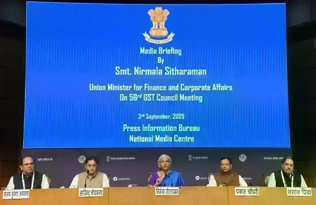 केंद्रीय वित्त मंत्री निर्मला सीतारमण ने बुधवार को जीएसटी परिषद की 56वीं बैठक के बाद नई दिल्ली में आयोजित प्रेस कांफ्रेंस में इसकी जानकारी दी। सीतारमण ने कहा, "हमने जीएसटी स्लैब कम कर दिए हैं। उन्होंने बताया कि जीएसटी परिषद ने जीएसटी की दर में व्यापक बदलाव को मंजूरी दे दी है। चार की जगह दो कर स्लैब पांच फीसदी और 18 फीसदी किए गए हैं। उन्होंने आगे कहा, "ये सब 22 सितंबर 2025, नवरात्रि के पहले दिन से प्रभावी होगा।