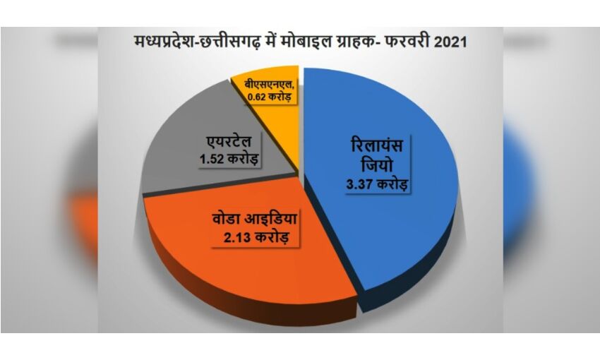 ट्राई के अनुसार मध्यप्रदेश-छत्तीसगढ़ में रिलायंस जियो ने फरवरी 2021 में 3.5 लाख नए ग्राहक जोड़े हैं। अब जियो के 3.37 करोड़ ग्राहक हैं। मध्यप्रदेश में जियो के ग्राहक बढ़ने के पीछे कंपनी के बेहतरीन 4जी नेटवर्क की पूरे सर्किल में पहुंच और किफायती प्लान प्रमुख कारण है। रिपोर्ट के अनुसार भारती एयरटेल के ग्राहक 2.69 लाख बढ़कर 1.52 करोड़ हो गए हैं। वहीं वोडाफोन आइडिया के ग्राहकों की संख्या 17244 घटकर 2.13 करोड़ हो गई है। सरकारी कंपनी बीएसएनएल के ग्राहकों की संख्या 41249 घटकर 62.5 लाख हो गई। मध्यप्रदेश-छत्तीसगढ़ में कुल ग्राहक 5.62 लाख बढ़कर 7.66 करोड़ हो गए।