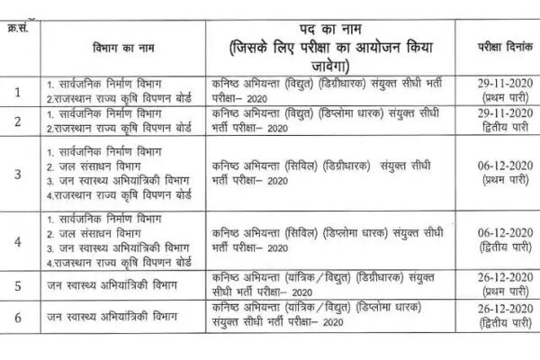 राजस्थान जेई भर्ती परीक्षा का शेड्यूल हुआ जारी