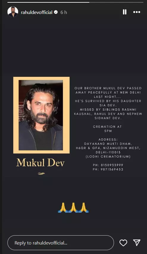 |Mukul Dev: अभिनेता मुकुल देव के निधन से इंडस्ट्री को गहरा झटका लगा, महज 54 साल की उम्र में उन्होंने दुनिया को अलविदा कह दिया। एक्टर के निधन के बाद इंडस्ट्री शोक में डूबी हुई है। आपको बता दें कि आज शाम 5 बजे दिल्ली में उनका अंतिम संस्कार किया गया, जहां अभिनेता के बड़े भाई राहुल देव ने उन्हें रीति-रिवाज के साथ अंतिम विदाई दी।