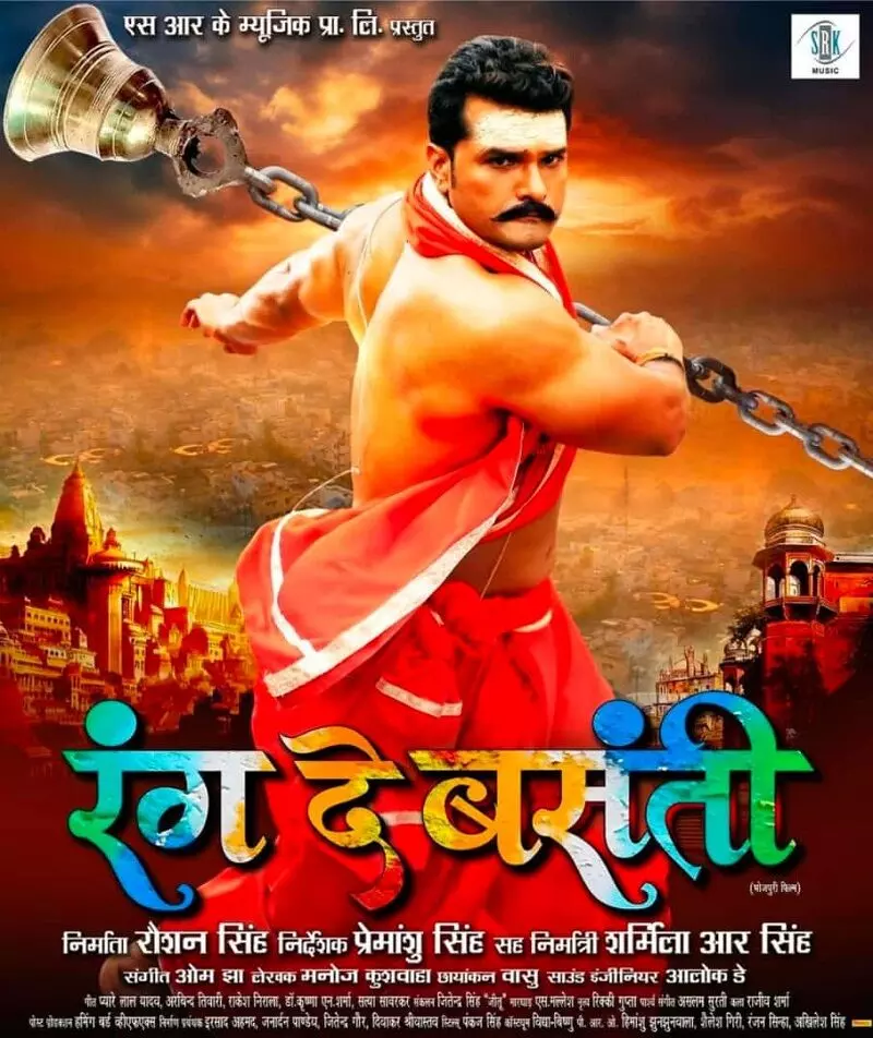 सुपरस्टार खेसारी लाल यादव और निर्माता रोशन सिंह की अपकमिंग फिल्म ''रंग दे बसंती'' का फर्स्ट लुक आउट हो गया है। इसमें खेसारी लाल यादव का अलग ही अंदाज नजर आ रहा है। खेसारी लाल यादव फर्स्ट लुक में पंडित की भूमिका में नजर आ रहे हैं और उनके माथे का तेज बेहद आकर्षक है। फिल्म के लुक में खेसारी लाल यादव मंदिर का घंटा अपने हाथ में खींचे हुए हैं जो यह प्रदर्शित करता है कि फिल्म एक्शन से भी भरपूर होने वाली है।