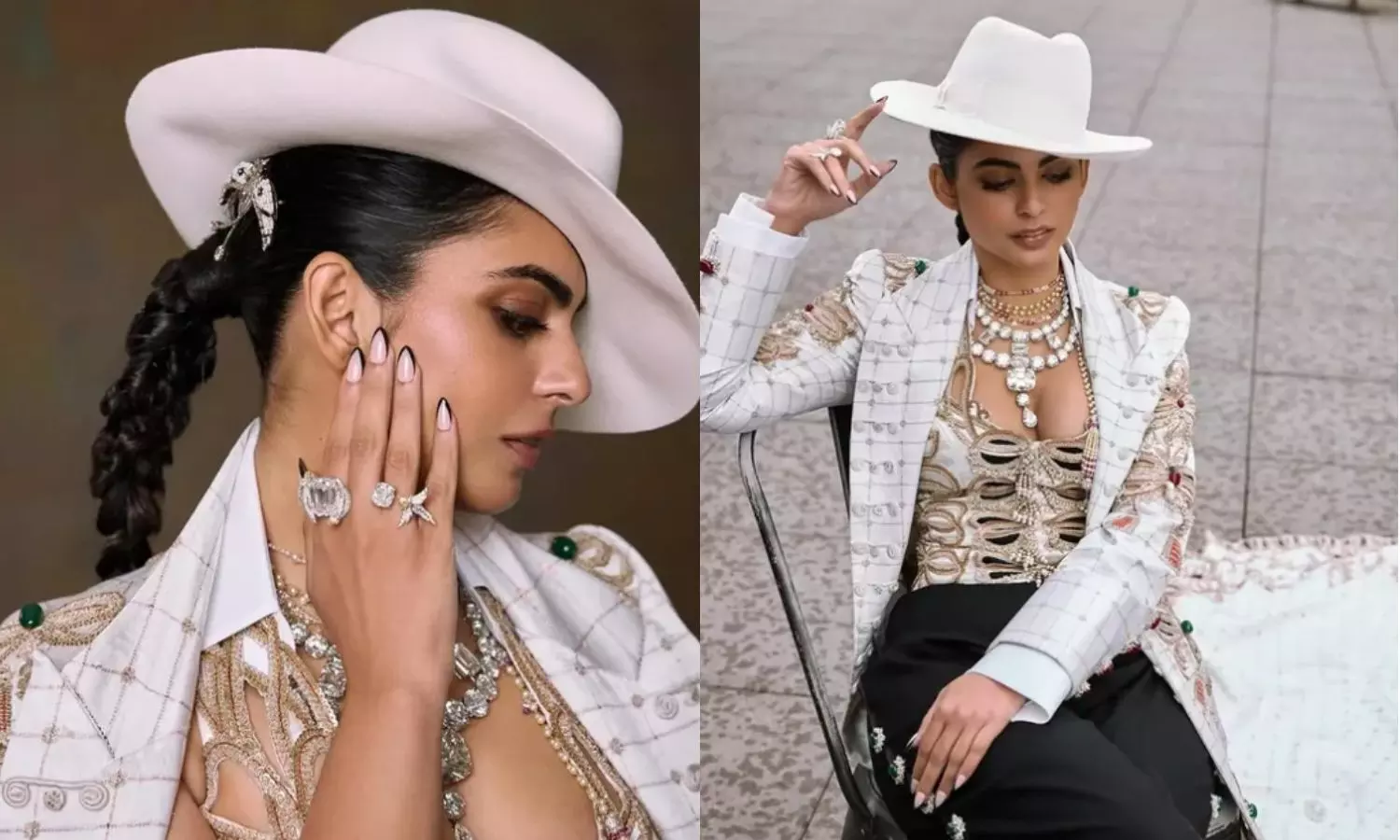 ईशा ने मेट गाला में ट्रेड को फोलो करते हुए वाइट और ब्लैक कलर का खूबसूरत कॉर्सेट पहना। जिस पर गोल्ड कलर के सितारों से बो स्टाईल जैसा डिजाइन बने है। साथ ही बॉर्डर को वाइट मोतियों से हाइलाइट किया गया है।